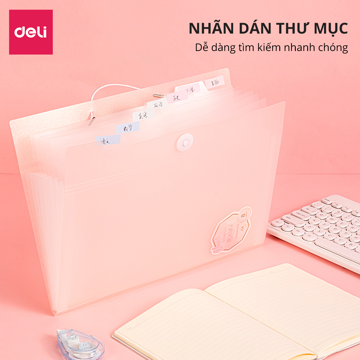 ✨Cặp Túi Đựng Tài Liệu A4 Deli File Đựng Tài Liệu Hồ Sơ 8 Ngăn Túi Hồ Sơ Văn Phòng File Lưu Trữ Đa Năng Màu Hồng Pastel, Bìa Cứng Công Nghệ Mới Đẹp Long Lanh - Bột mịn lấp lánh