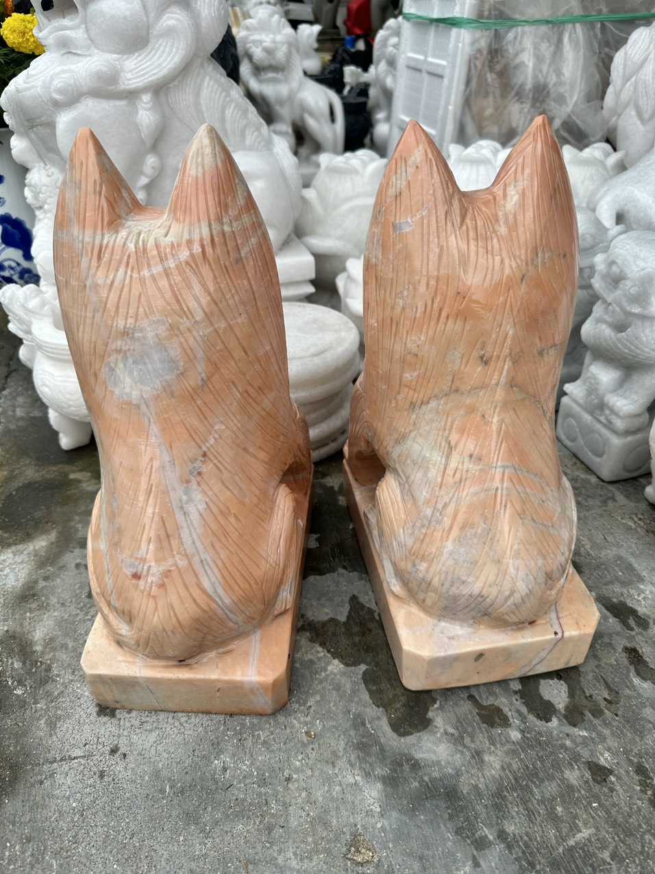 Hợp mệnh Thổ - Kim Chất liệu: Đá cẩm thạch vàng cà rốt Kích thước: Dài 15 cm X Rộng 6 cm x Cao 12,5 cm Khối lượng: 3,2 kg / cặp Ý nghĩa Tỳ