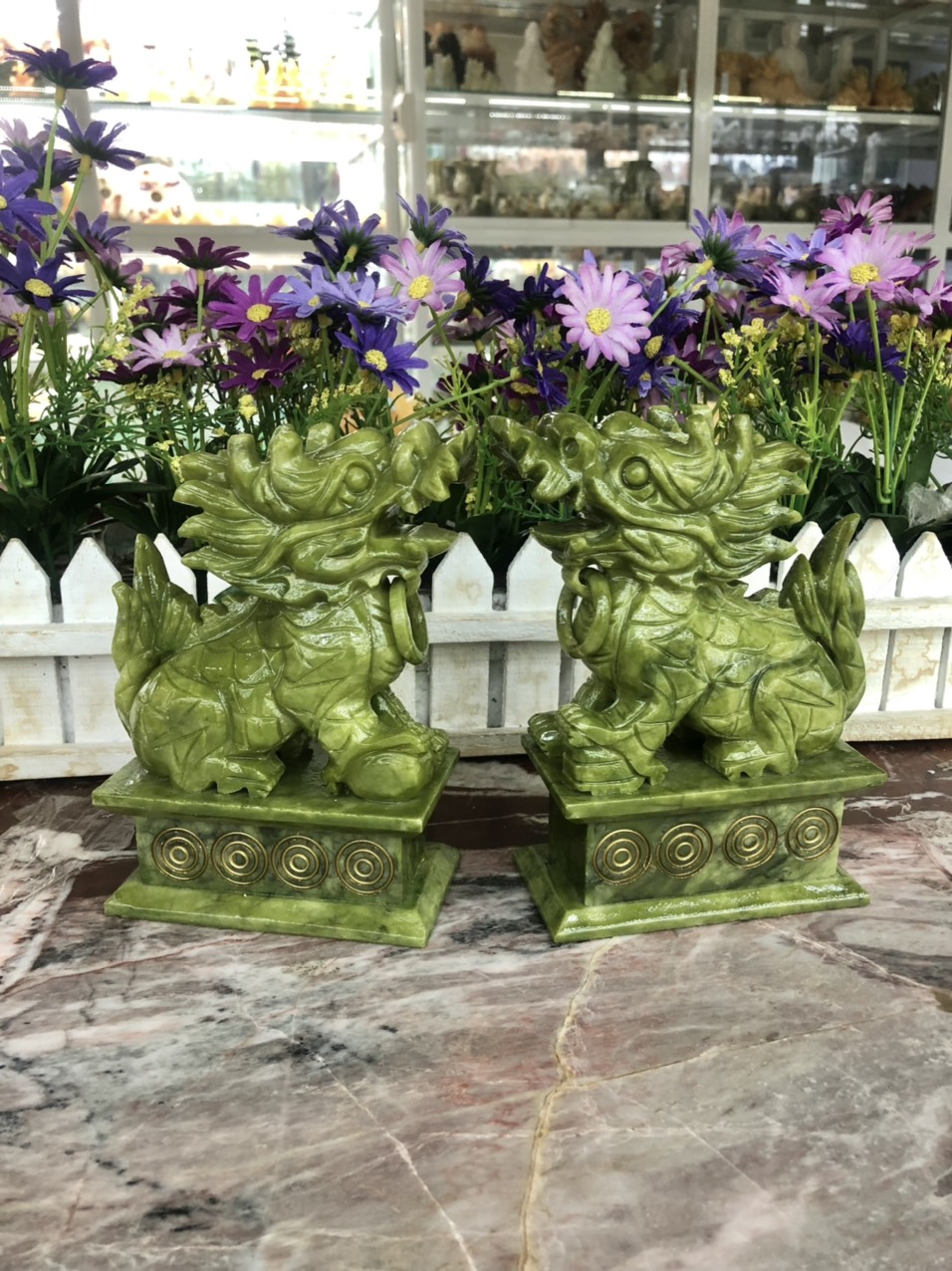 Kỳ Lân đá có tác dụng hóa giải Bạch Hổ. Đặt một đôi Lân ở phương Bạch Hổ trong nhà có thể hóa giải hung tính của phương Bạch Hổ, làm cho mọi người sống trong nhà được bình an.
