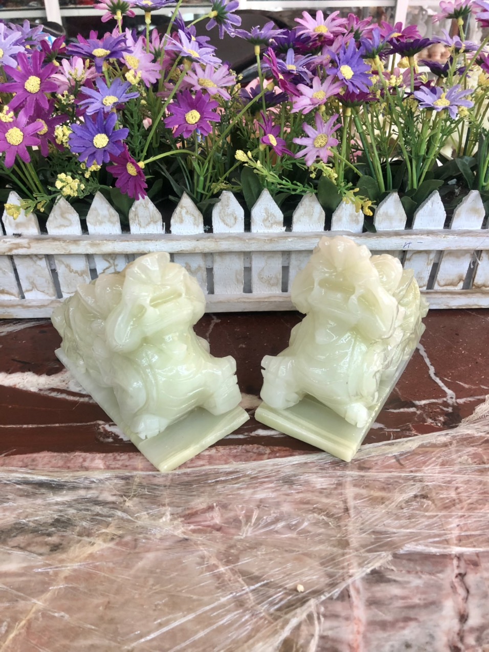 Cặp Tỳ Hưu Phong Thủy Đá Ngọc Onyx Pakistan Tự Nhiên Màu Trắng Ngọc 20cm