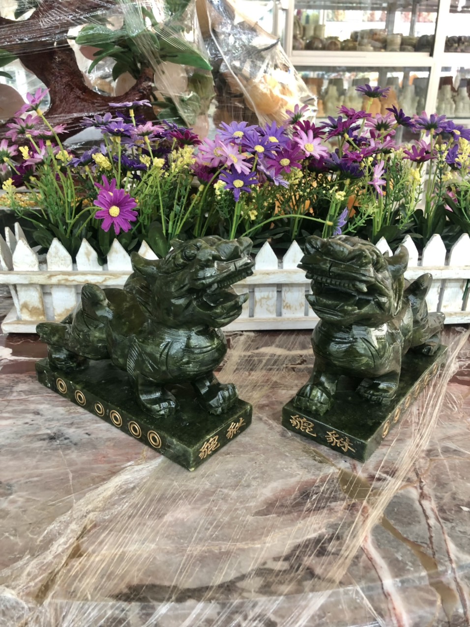 ✨Cặp Tỳ Hưu phong thủy đá ngọc serpentine có đế - Dài 17 cm