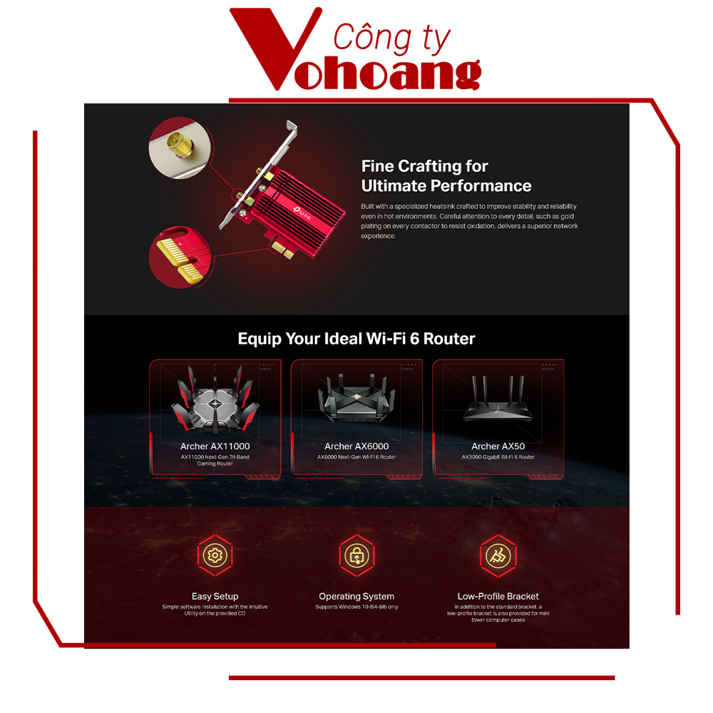 - Thương hiệu TP-Link uy tín, bảo hành chính hãng - Cổng PCIe kết nối trực tiếp với PC, đảm bảo hiệu suất tối đa - Tương thích Windows 11, 10, dễ dàng cài đặt