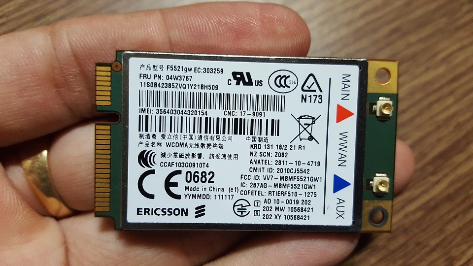 - Tên sản phẩm: Card wwan 3G Ericsson F5521GW Gobi 3000