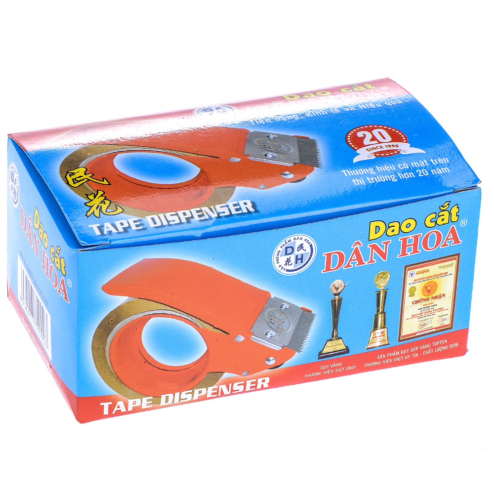 - Dao cắt băng keo Dân Hoa cầm tay kích thước 5cm giúp người sử dụng dễ dàng điều khiển việc cắt dán băng keo thật tiện lợi và an toàn với tay cầm chắc