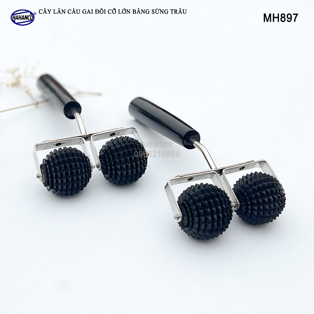 (chi tiết) Cây lăn cầu gai đôi cỡ lớn bằng sừng trâu - dụng cụ diện chẩn - MH897 - LH 0966218866