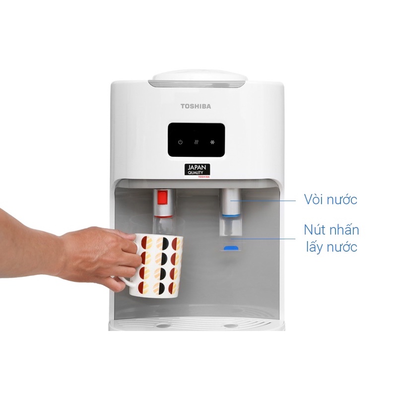 Cây nước nóng lạnh Toshiba có kết cấu vững chắc, thiết kế hiện đại, màu trắng tươi sáng, tạo điểm nhấn cho không gian sử dụng thêm sang trọng Thích hợp lắp đặt và sử dụng