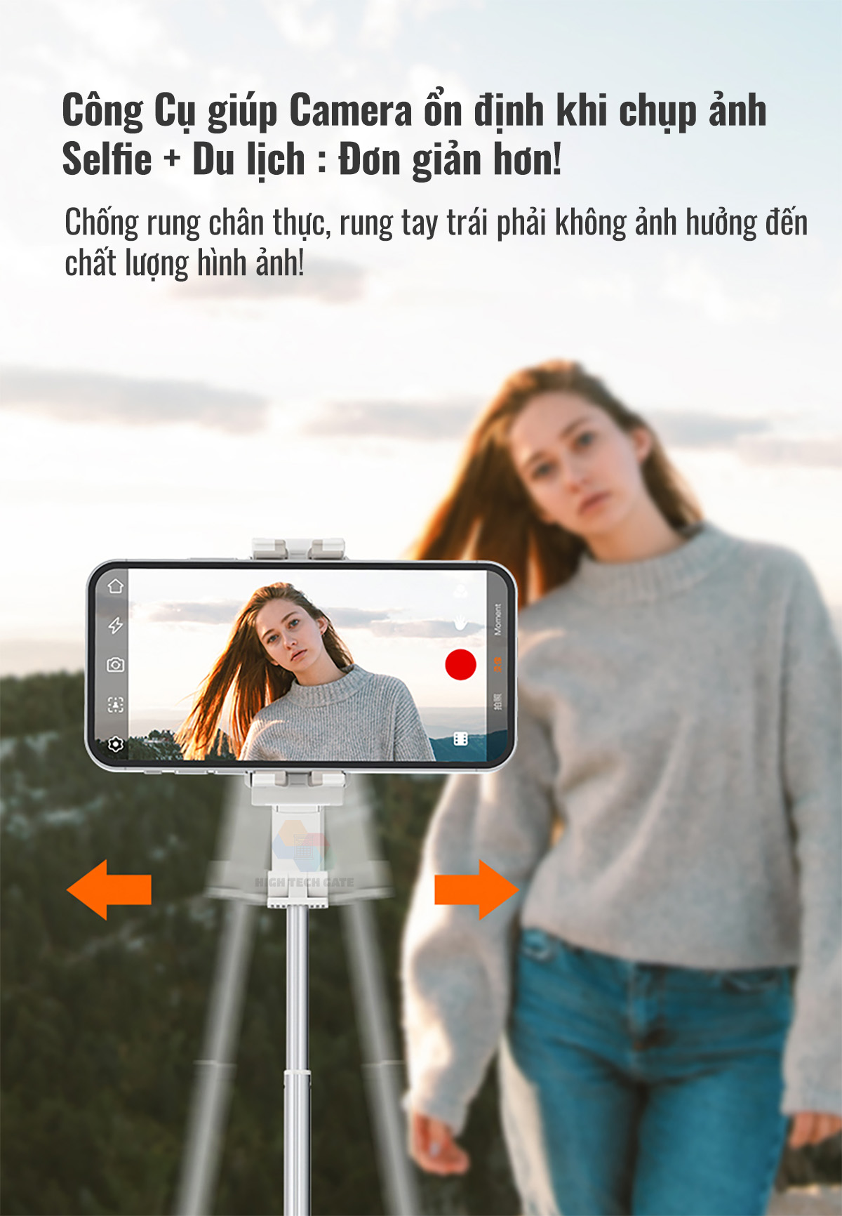 Mua tại TiktokTÍNH NĂNG NỔI BẬT - Khả năng chống rung điện tử cực tốt - Độ dài tối đa lên đến 86cm tha hồ selfie - Khóa ngang tự động 180 độ, chuyển đổi màn hình