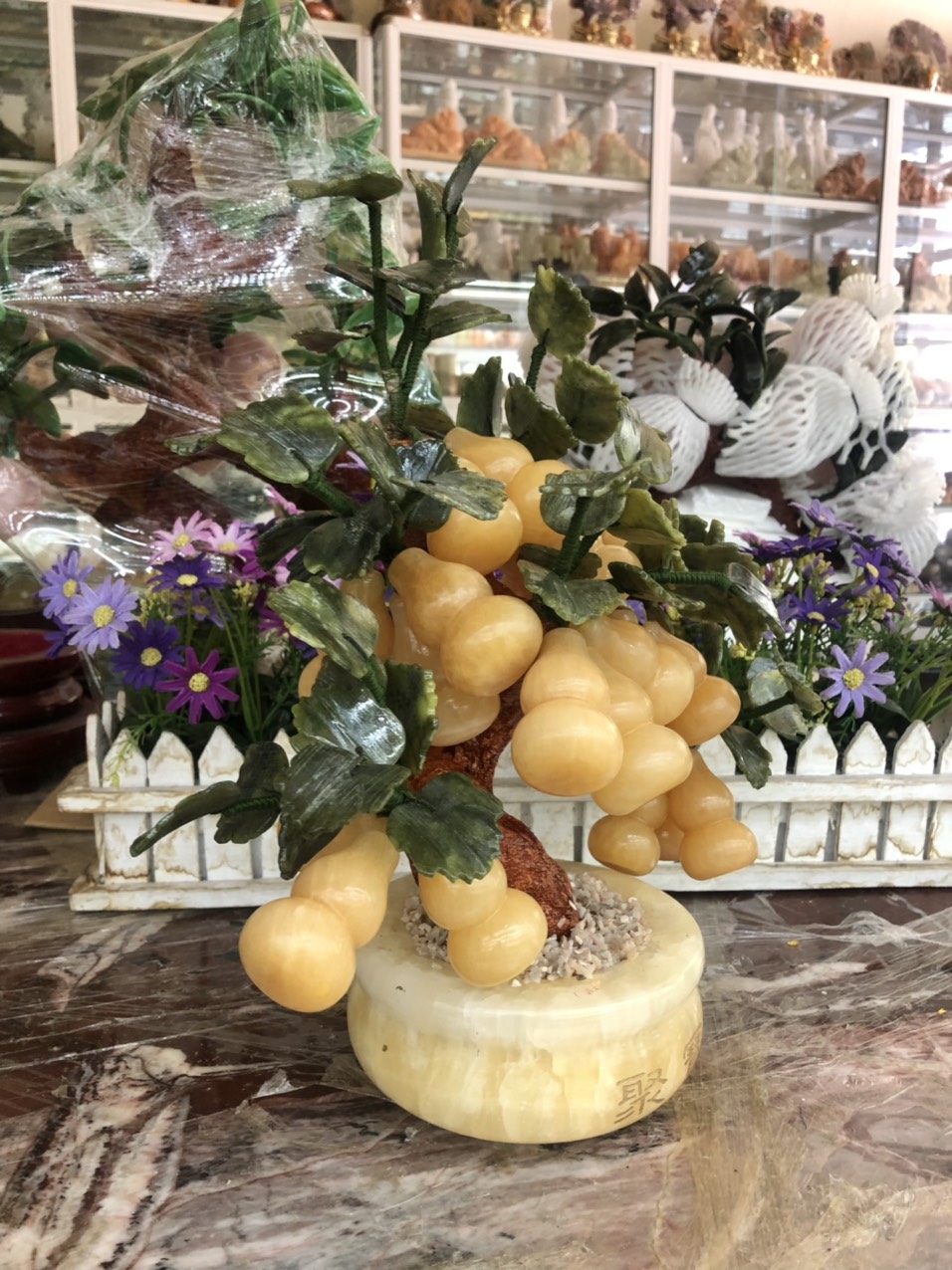 ✨Cây tài lộc hồ lô phong thủy đá ngọc hoàng long - Cao 34 cm