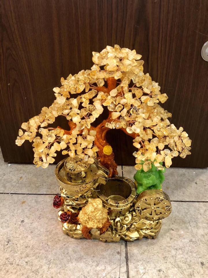 Hợp mệnh Thổ - Kim Chất liệu: Đá thạch anh vàng Kích thước: Dài 28 cm x Rộng 18 cm x Cao 40 cm Khối lượng: 3,8 kg Cây tài lộc là biểu tượng của