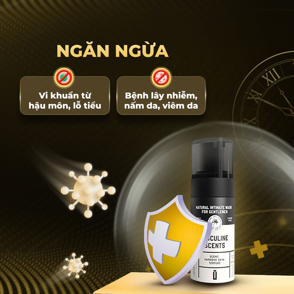 ✪ Đặc điểm: Dạng bọt, có tác dụng tốt trong việc vệ sinh "cậu bé", ngăn mùi hiệu quả. Bên cạnh đó là khả năng kháng khuẩn, ngăn chặn sự sinh sôi của vi khuẩn và nấm gây bệnh. Hương thơm nam tính, quyến rũ đem đến cảm giác tự tin, thoải mái cho người dùng. Thành phần sản phẩm giúp cải thiện sắc tố da, giảm thâm và làm sáng da, duy trì độ đàn hồi và mềm mịn. Sản phẩm có thể sử dụng mỗi ngày.