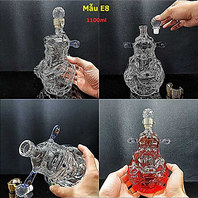Chai Đựng Rượu Thủy Tinh 1000ML cao cấp mẫu Thần Tài Chai thủy tinh đựng rượu 1 Lít – Vỏ Chai Rượu Đẹp decor (E8) Glass bottle 1000ml – God of Wealth design - 1 bottle (E8 pattern) – 주병 - 술병