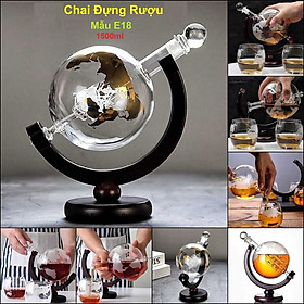 Chai Đựng Rượu Thủy Tinh 1500ML địa cầu kèm đế gỗ - Vỏ Chai Rượu Đẹp (E18)
