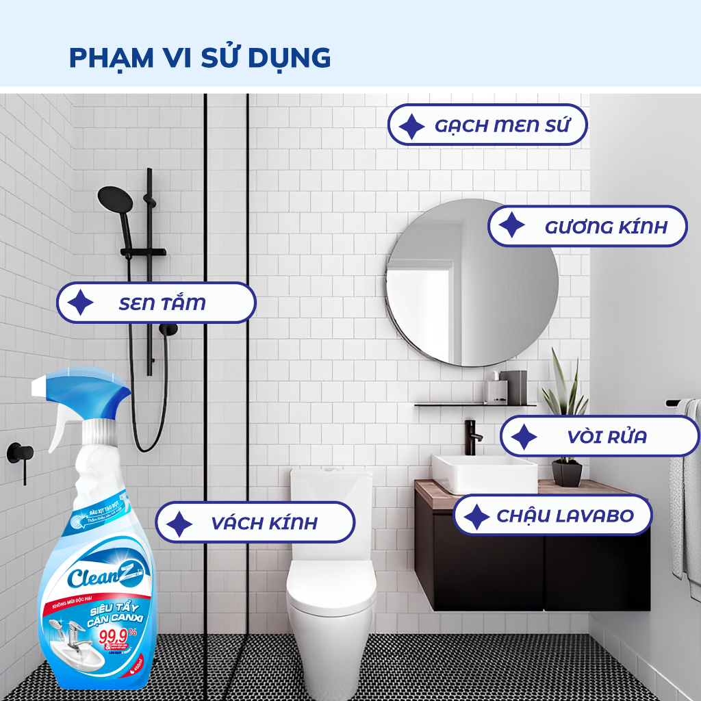 ✨Chai Xịt Siêu Tẩy Cặn Canxi CleanZ Chống Ăn Mòn Inox Vệ Sinh Vòi Rửa, Vòi Sen, Vách Kính 330ml
