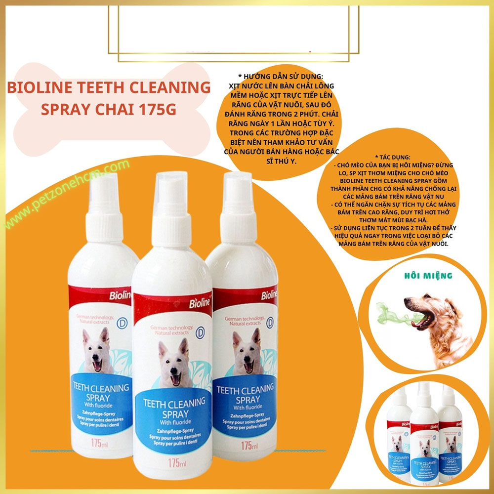 Xịt miệng khử mùi hôi chống viêm cho chó mèo Bioline 175ml #petzonehcm #bioline
