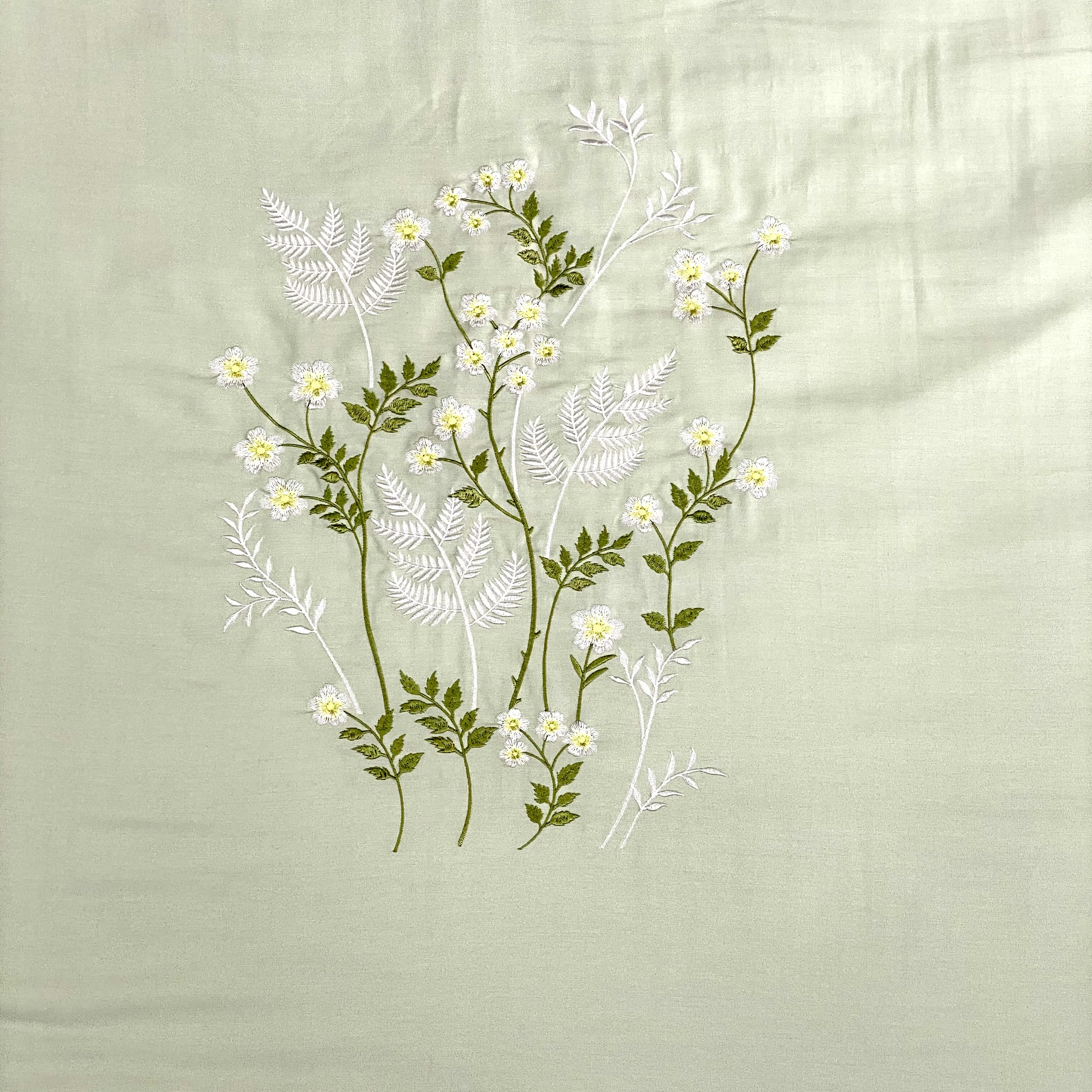 Chất liệu: Tencel. Xuất xứ : Việt Nam. Họa tiết hoa loa kèn nhỏ kết hợp cùng hoa văn cô điển được thêu màu chỉ nâu nhạt trên nền vải Tensen màu vàng mỡ gà,đây