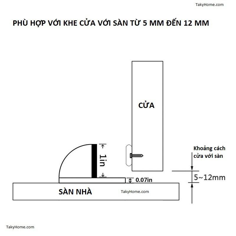 - Chặn cửa bán nguyệt Nam châm của Taky Home được lắp đặt ở dưới sàn nhà, ngăn không cho cửa va chạm mạnh vào tường, đảm bảo sự bền bỉ của tay nắm và cửa với tường.