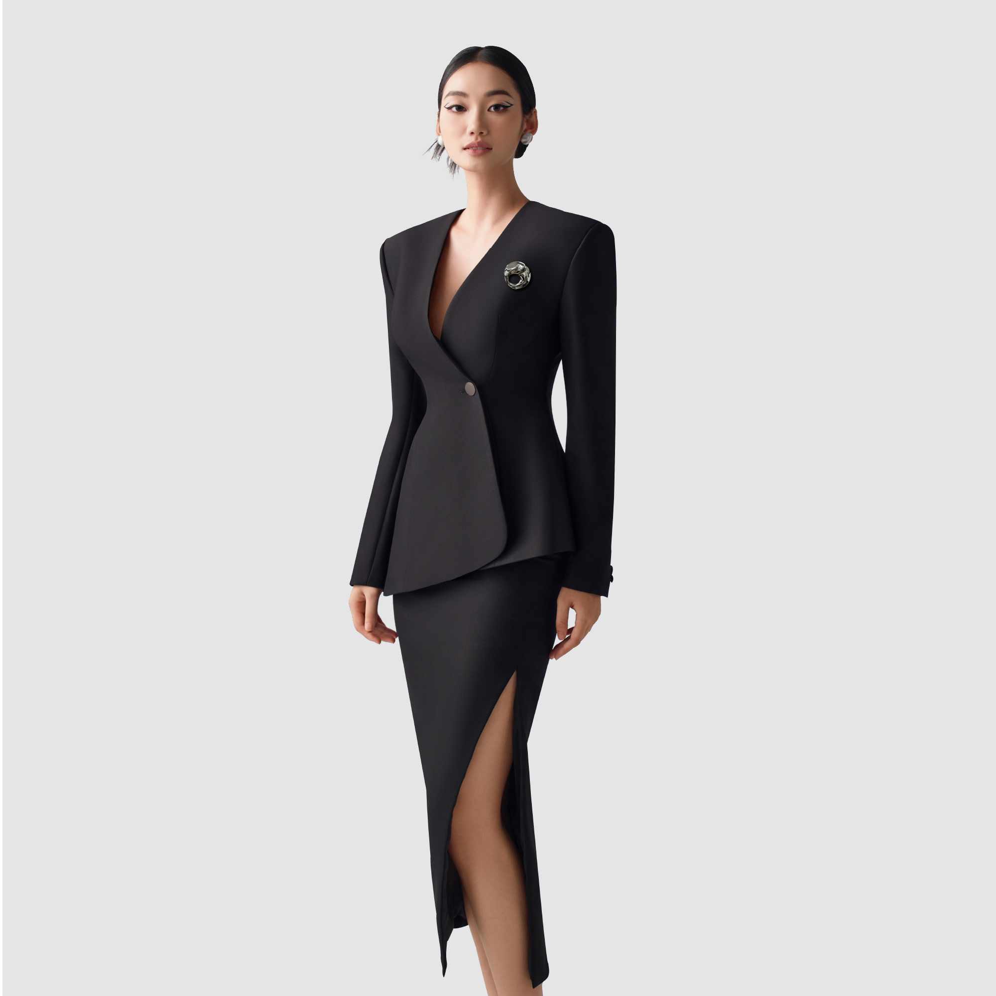 Thiết kế chân váy ôm chữ A vừa vặn tôn dáng với đường xẻ sau tinh tế mang đến sự linh hoạt và uyển chuyển trong từng bước đi. Váy có độ dài qua gối