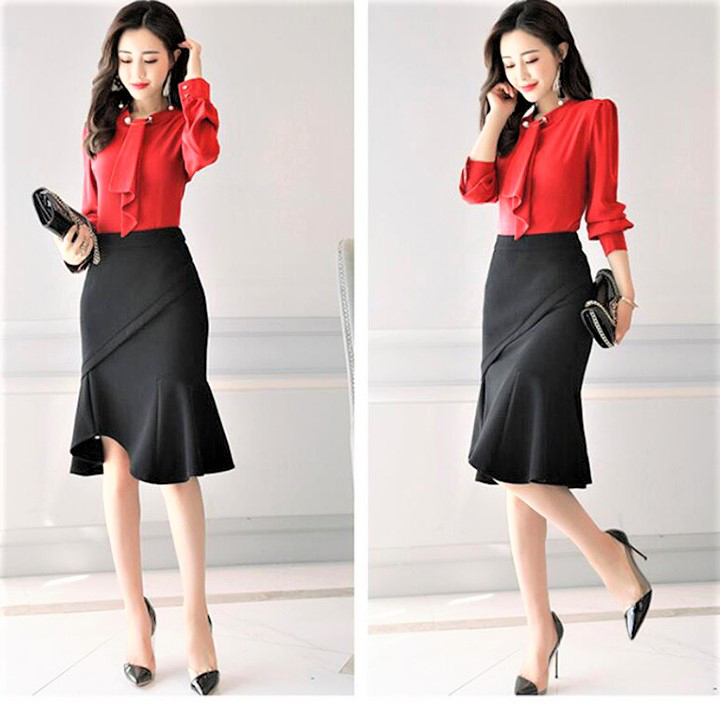 chân váy đuôi cá midi dáng dài ôm body