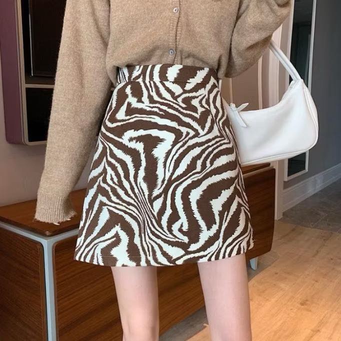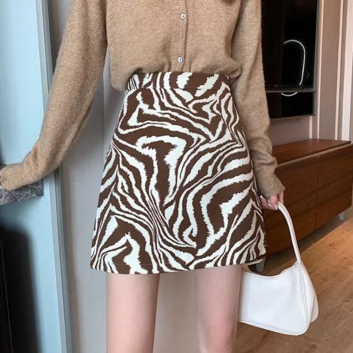 ✨Chân váy ngắn nữ họa tiết vằn sành điệu (Màu nâu)