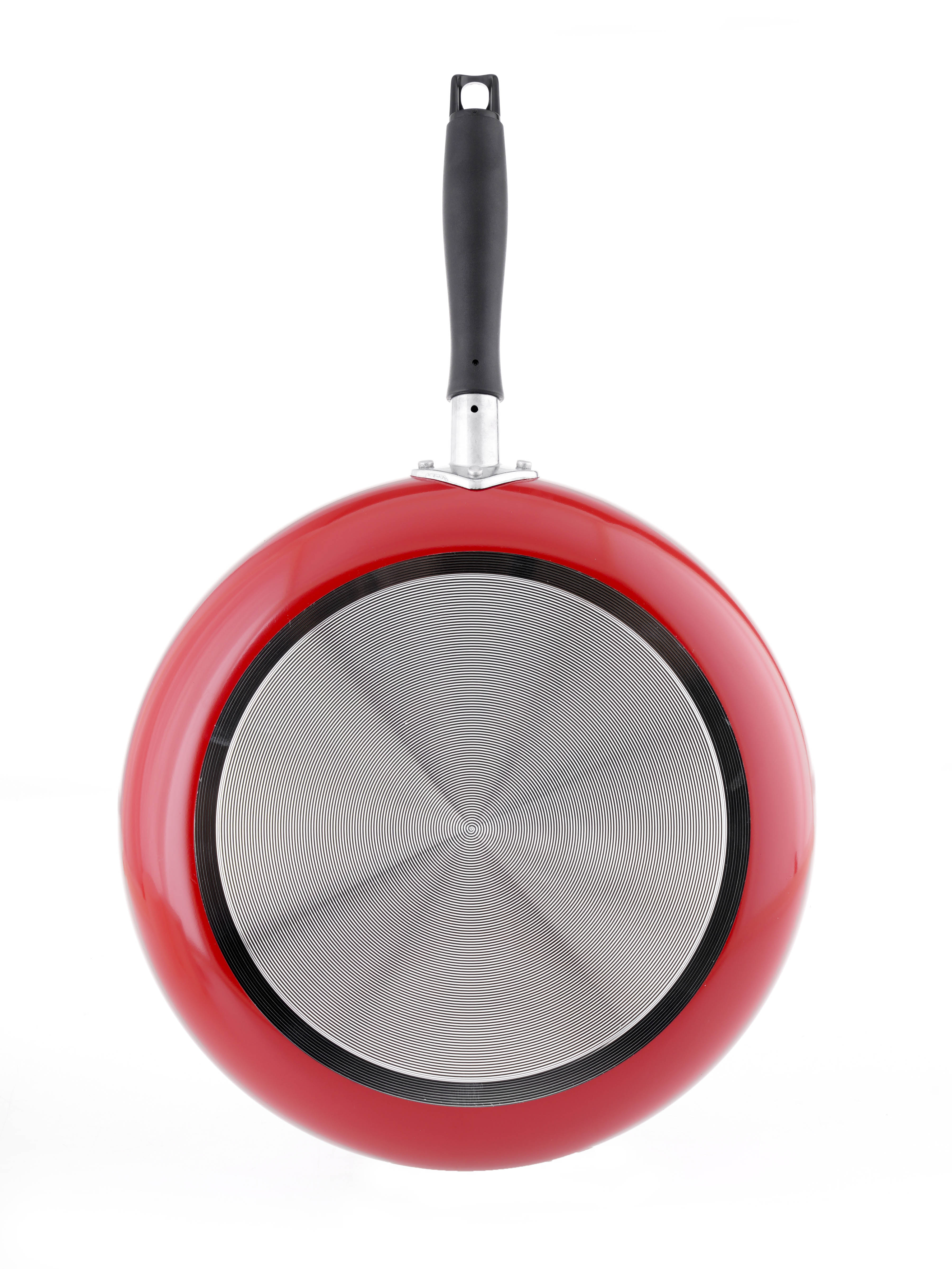 Chiếc chảo thanh lịch này từ Bộ sưu tập Burgundy của chúng tôi được làm bằng nhôm rèn với lớp phủ đá cẩm thạch chống dính. Đáy cảm ứng, được tạo ra với sự hỗ