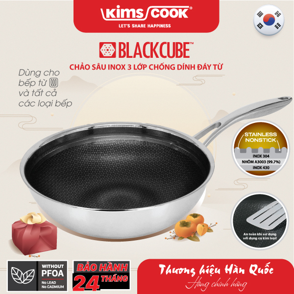 Product name: Chảo Sâu Blackcube INOX 3 lớp đáy từ chống dính Kims Cook