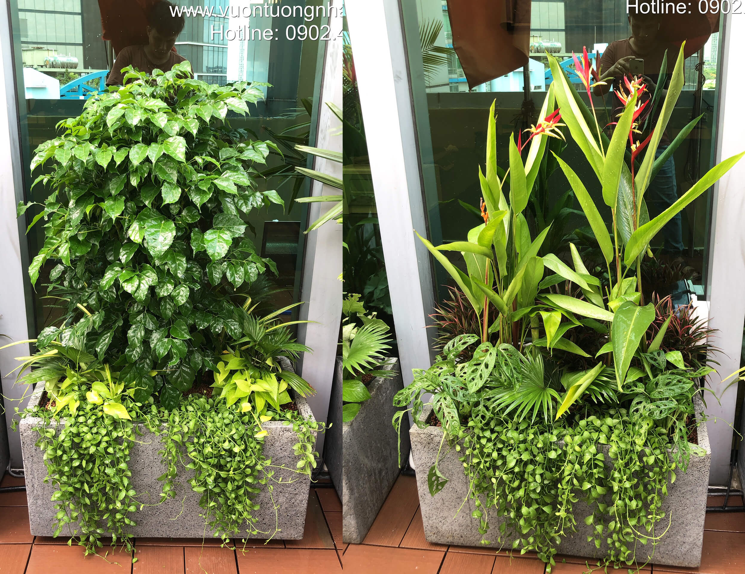 Trồng cây tranh trí ban công chung cư hay cây ban công văn phòng bằng chậu đá mài là cách lựa chọn Đơn giản hơn và tiết kiệm chi phí hơn sơ với những mảng cây tường đứng phủ xanh gồm: