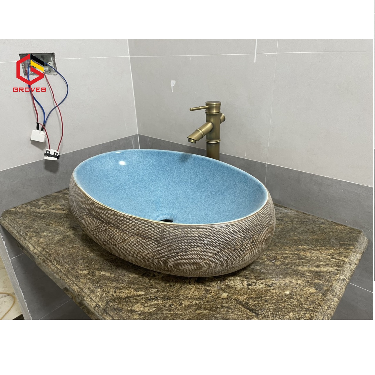 CHẬU VÂN ĐÁ 7 MẦU là mẫu thiết bị vệ sinh GROVES có kiểu dáng đẹp với thiết kế hình elip thu hút, men sứ chống bám bẩn, lòng chậu sâu và rộng ,