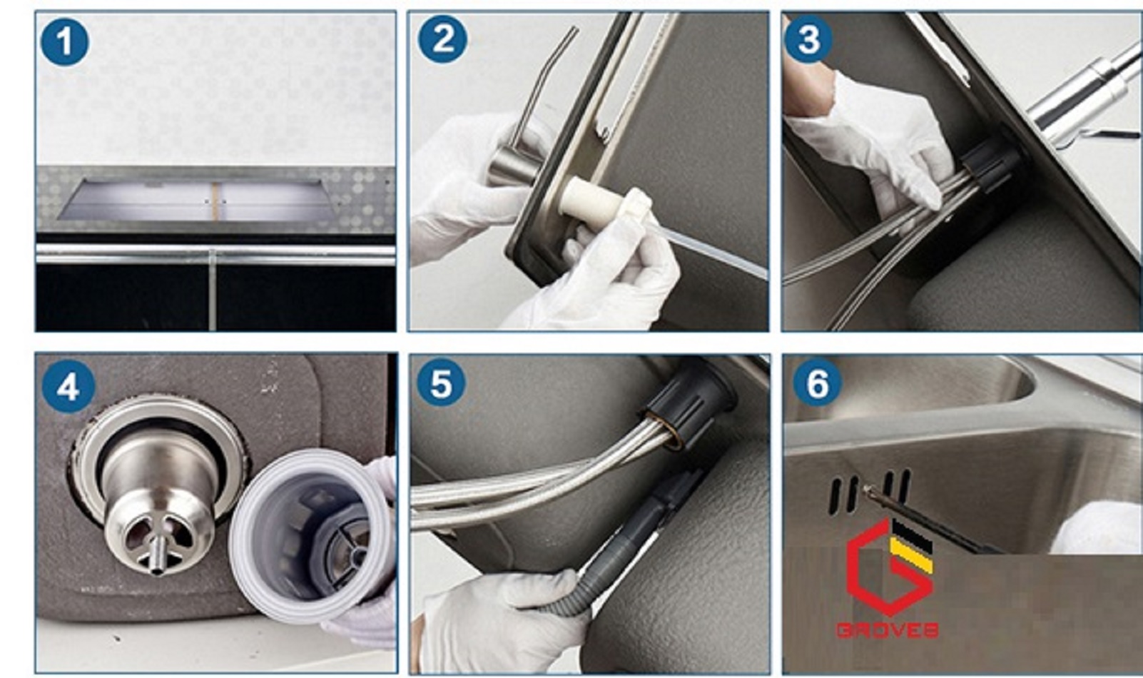 Lưu ý: bộ sản phẩm không kèm theo vòi rửa bát & bình đựng nước rửa chén.