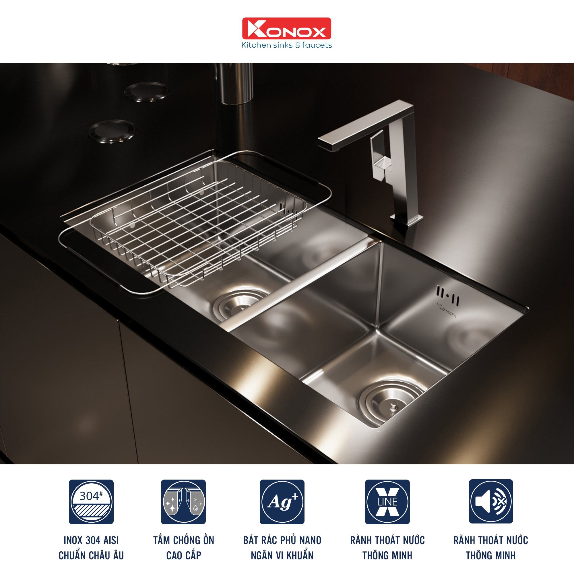 Chậu có thiết kế 2 hố cân Chậu rửa bát với thép cao cấp, siphong nhập tư châu Âu Dung tích chứa lớn với độ sâu bồn tới 190mm Dễ dàng dọn dẹp và lau