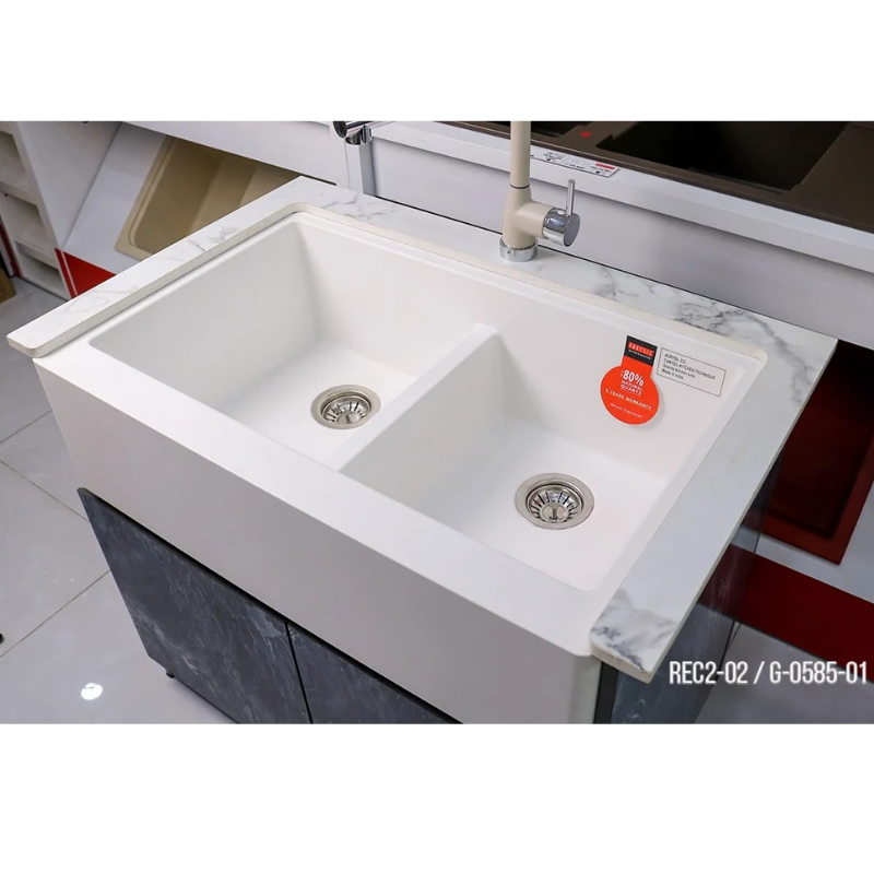 Chậu rửa chén Ecalite EFS-2005.11559B - 2 ngăn lệch kết hợp bàn chờ Chậu rửa chén đá 2 ngăn Ecalite sở hữu thiết kế 2 ngăn lệch nhau kết hợp bàn chờ vô cùng ấn