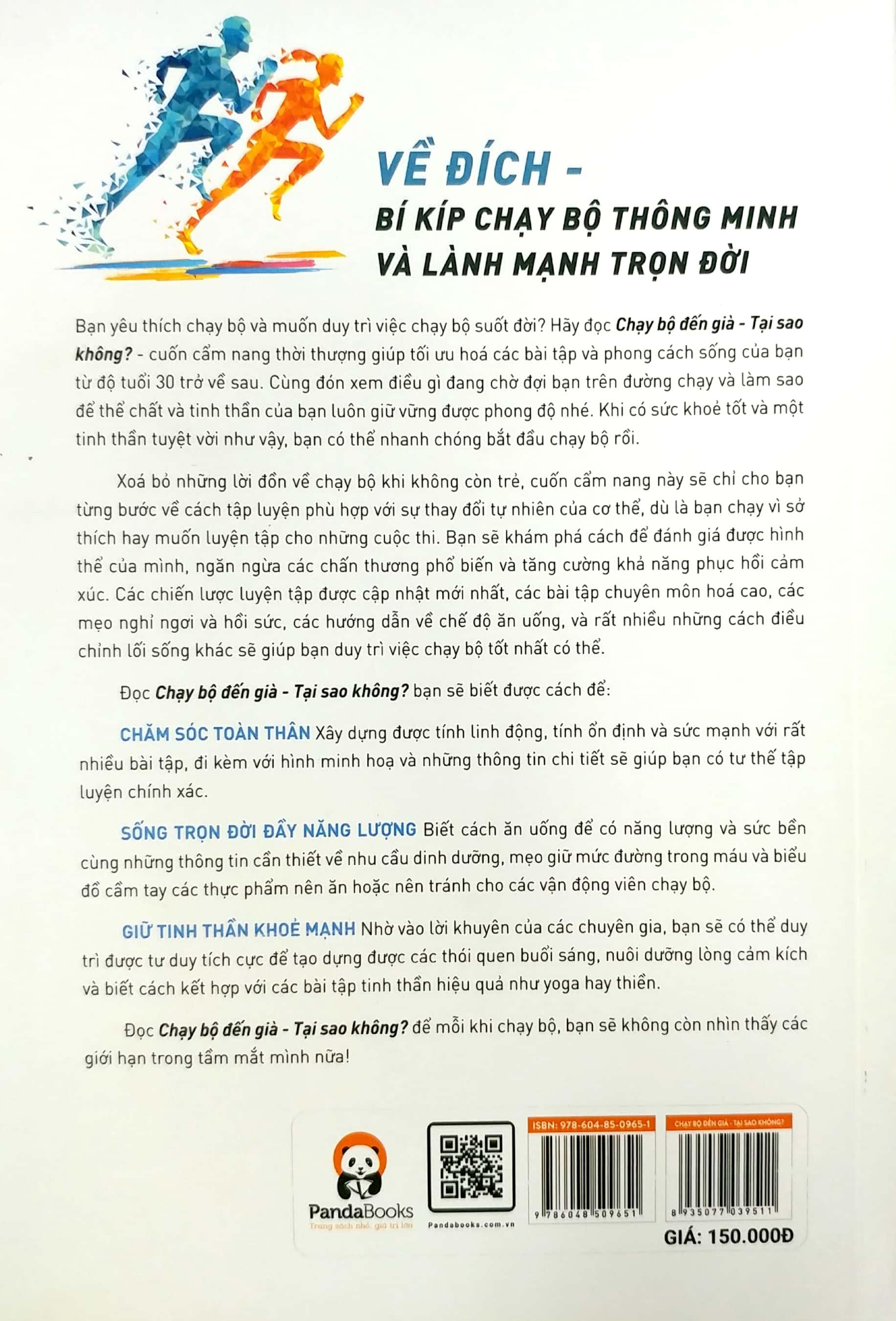 Và như vậy, Chạy bộ đến già - Tại sao không? ra đời, không phải chỉ để hướng tới đối tượng là những vận động viên lớn tuổi, mà còn là cuốn cẩm nang cho các vận động viên trẻ tuổi để biết cách giữ gìn và duy trì phong độ đỉnh cao lâu nhất có thể; cũng như không để thời gian cản trở đam mê.