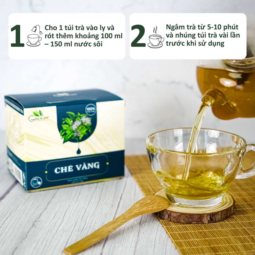 • Cho 1 túi trà chè vằng Goce vào ly