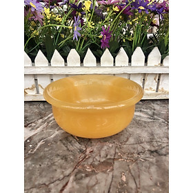 Chất liệu: Đá ngọc hoàng long Kích thước: Đường kính 10,5cm; Cao 4cm; Sâu 2,7cm Khối lượng: 260g
