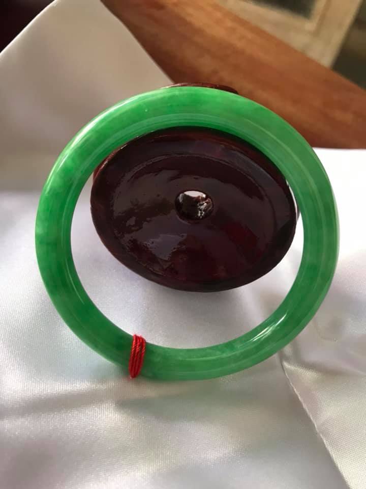 💌Vòng Tay nữ Cẩm Thạch Lý Nở 53mm x Dầy 7,2mm Màu Xanh lá Tươi bóng đều đẹp hợp Nữ mệnh Mộc Hỏa ạ