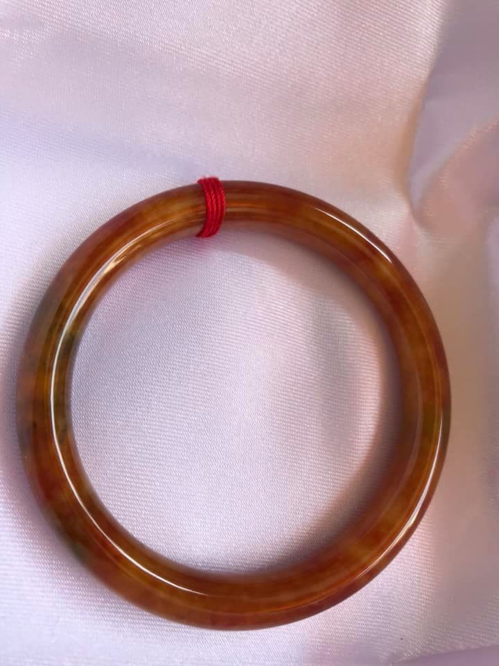 💕💦💕Vòng cẩm thạch Tứ Quý đẹp 51mm xdầy 7,5mm Màu Cam Bông Xíu Xanh Nhẹ bóng đẹp lắm 50kg-56kg480k