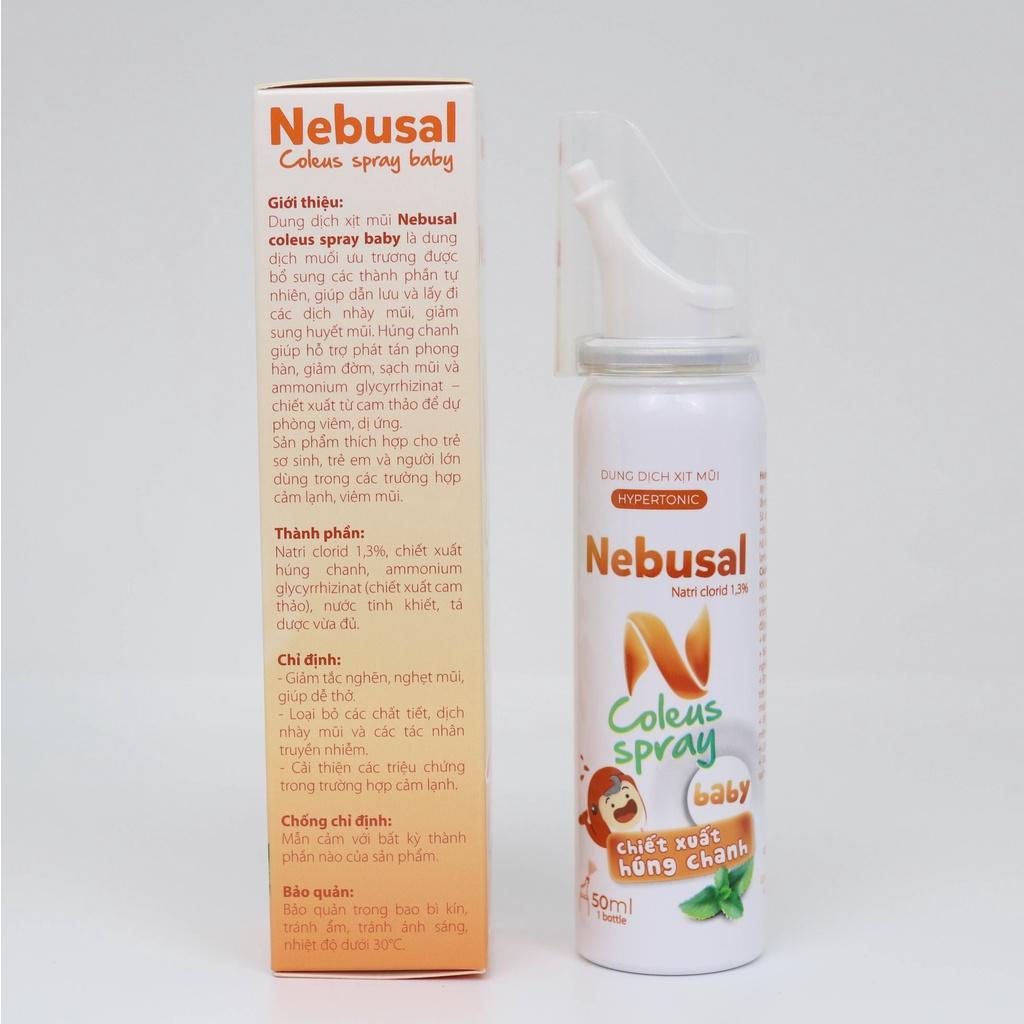 ✨(CHÍNH HÃNG) Xịt Mũi Nebusal Coleus chiết xuất Húng Chanh giảm Nghẹt Mũi, Sổ mũi ở người lớn và trẻ em (50ml)