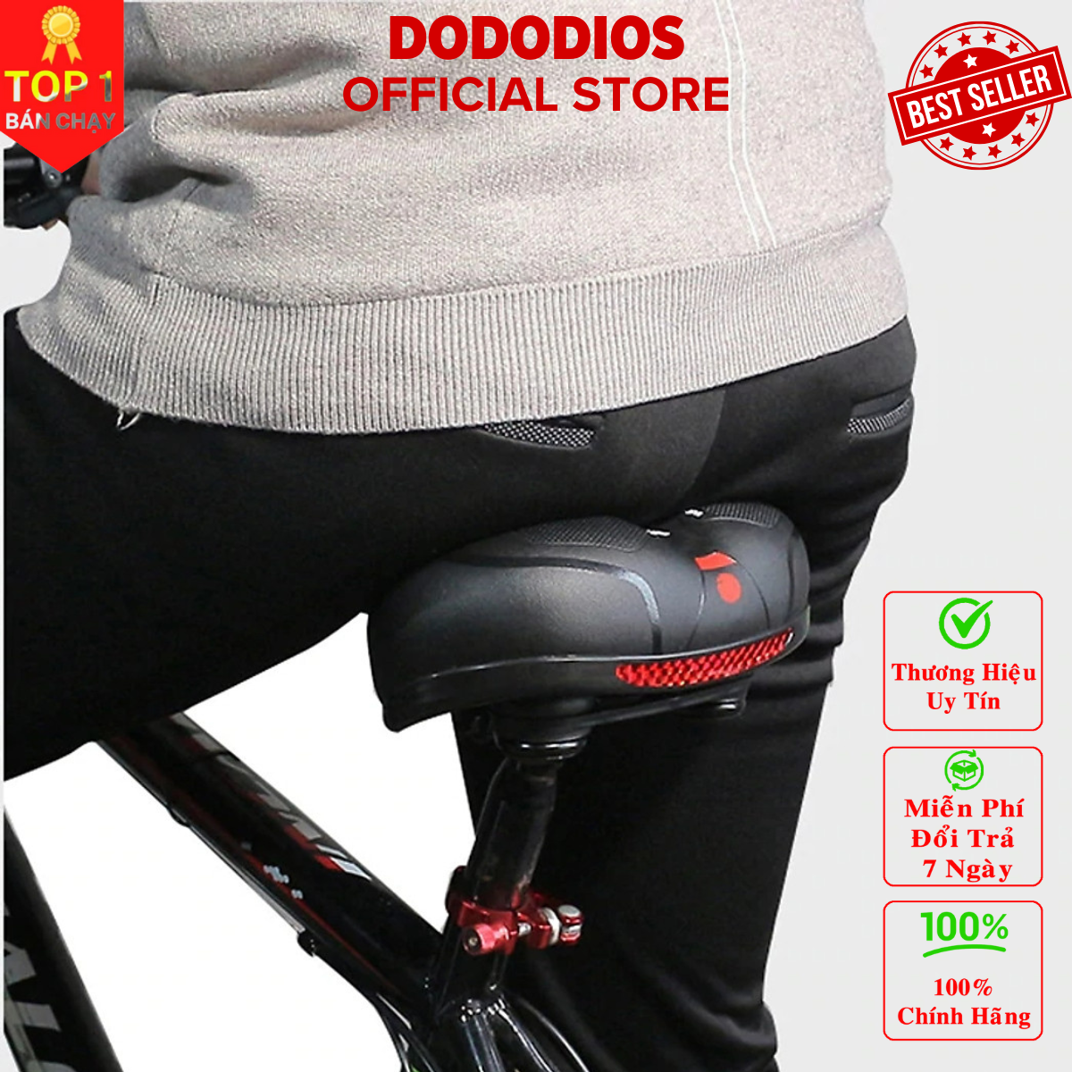 Yên xe đạp thể thao êm ái thoáng khí dễ lắp đặt Đệm Yên xe địa hình thể thao chuyên dụng Thương hiệu DoDoDios     Mô Tả Sản Phẩm Kích thước: 250x200x90mm Trọng lượng: 715g Màu sắc: Đen đỏ Thoải mái: Thoải mái mềm mại, mềm với lò xo nâng cấp     Chất liệu: Da PU, đệm mút Bọt biển đàn hồi cao, đáy PP, lò xo chống sốc, miếng dán phản quang; Miếng dán phản quang giúp đạp xe an toàn ban đêm hơn Bề mặt Da chịu mài mòn cao Thoáng khí hơn với thiết kế khí động học     Đệm Yên Xe Đạp Thể Thao Đàn Hồi Mềm Dày Thoáng Khí Cao Cấp Giúp Êm Mông Thoải Mái (Bản Nâng Cấp) Chống Trượt, Siêu Êm Có Lỗ Rãnh Thoát (Thân Rộng)     Yên Xe Đạp Thể Thao Siêu Êm | Yên Xe Đạp Cao Cấp Carbon Siêu êm | Phụ Kiện Xe Đạp Giant, Xe Đạp MTB, Xe Đạp Thể Thao | Thoáng Khí - Không Thấm Nước - Hàng Chính Hãng     ️ Style: Sport DoDoDios là đơn vị cung cấp phụ kiện đồ chơi xe đạp, xe máy với nhiều chủng loại chất lượng luôn được quan tâm hàng đầu, giá thành hợp lý nhất thị trường hiện nay.