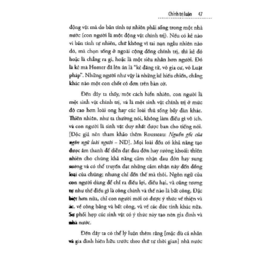 Theo Aristotle, là một người tốt không thôi chưa đủ. Nếu người dân tốt mà không tích cực tham gia vào đời sống chính trị của chế độ thì chế độ đó có cơ nguy trở thành thoái hóa và trở thành một chế độ xấu. – Dịch giả Nông Duy Trường