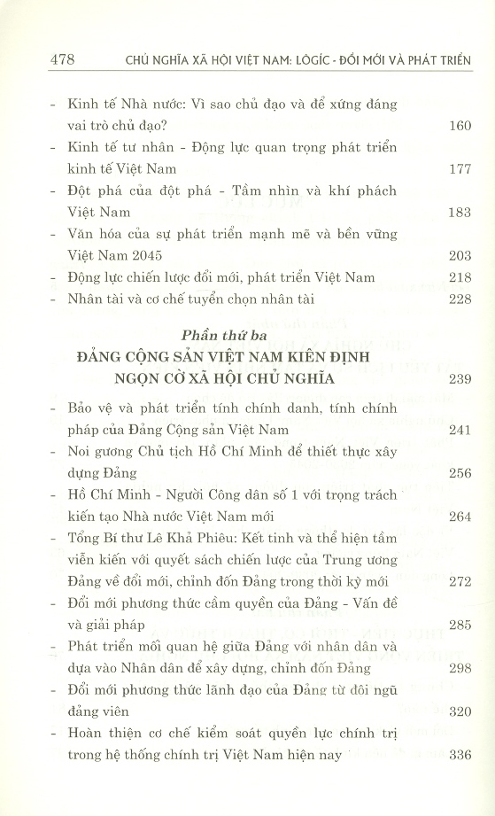 Cuốn sách tập hợp những công trình nghiên cứu đã công bố trên báo chí và các phương tiện thông tin đại chúng của tác giả trong quá trình toàn Đảng, toàn dân và toàn quân ta chuẩn bị những công việc hệ trọng cho Đại hội và nỗ lực tổ chức thực hiện thành công những quyết sách của Đại hội XIII của Đảng. Trên cơ sở tổng kết thực tiễn, xuất phát từ những yêu cầu phát triển đất nước, dự cảm sự vận động đa diện và phức tạp của thế giới, với cách nhìn lịch sử đa góc độ và biện chứng, tác giả thể hiện những nỗ lực, tâm huyết và sự cầu thị trong công việc tổng kết thực tiễn phức tạp và phong phú, góp phần phát triển lý luận về đổi mới tầm nhìn vĩ mô, định vị chiến lược quốc gia, tham chiếu những kinh nghiệm của thế giới, hoạch định những phương diện căn bản và chủ yếu, với kỳ vọng Việt Nam phát triển xã hội chủ nghĩa hùng cường, mạnh mẽ, bền vững và nhịp bước cùng nhân loại, trong tầm nhìn 2030, 2045.