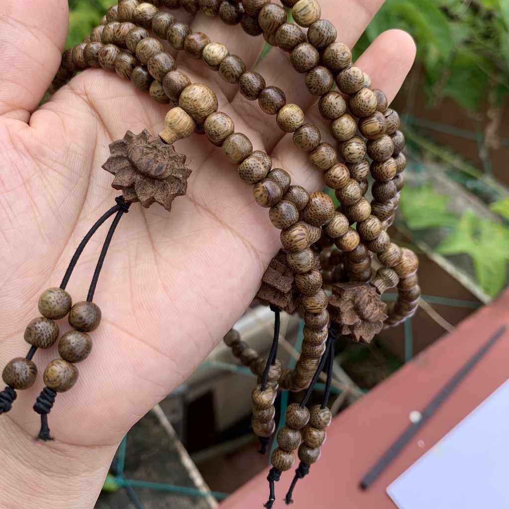 Mô tả sản phẩm: Vòng tay Trầm Hương chuỗi tràng 108 hạt/6mm - tặng kèm thêm dây và kim để thay thế.