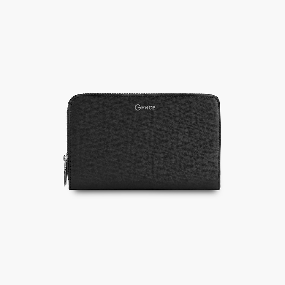 • Ví cầm tay nam Gence 2 khoá da bò Taiga đen HT21