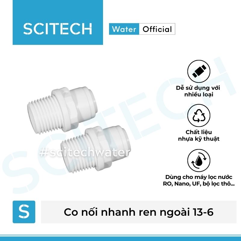 Mua tại TiktokCo nối nhanh ren ngoài 13/17/21 ra dây 6 hoặc ren ngoài 13/17/21 ra dây 10 máy lọc nước dùng để kết nối các phần trong máy lọc nước RO, máy lọc nước Nano và các hệ thống lọc nước khác. Co nối được làm từ chất liệu nhựa kỹ thuật chắc chắn và dễ dàng sử dụng, thay thế.