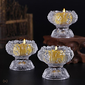 Đế nến hoa sen bày trên ban thờ hoặc tùy vào mục đích sử dụng của khách hàng Thủy tinh sáng trong, thiết kế tinh tế đẹp mắt Kích thước Thấp: 4 x 2.5cm Cao:5