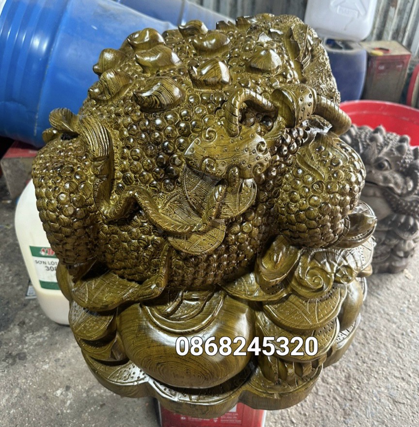 ✨Cóc ngậm đồng tiền phong thủy bằng gỗ mun đuôi công kt 47×47×40cm