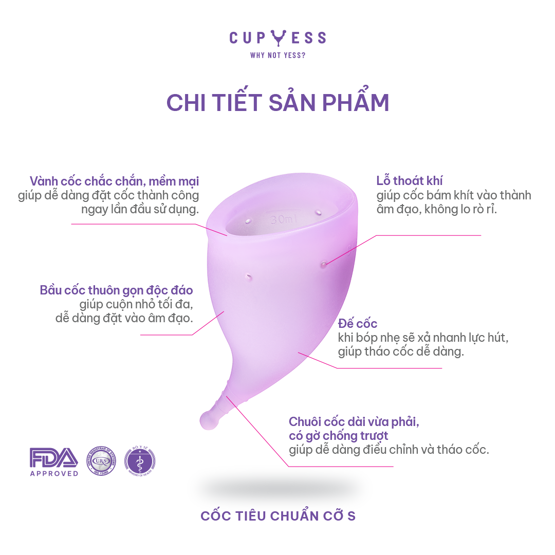 ✨Cốc nguyệt san tiêu chuẩn S Cup cỡ S (30ml) Cup Yess chính hãng, an toàn, phù hợp mọi cơ địa