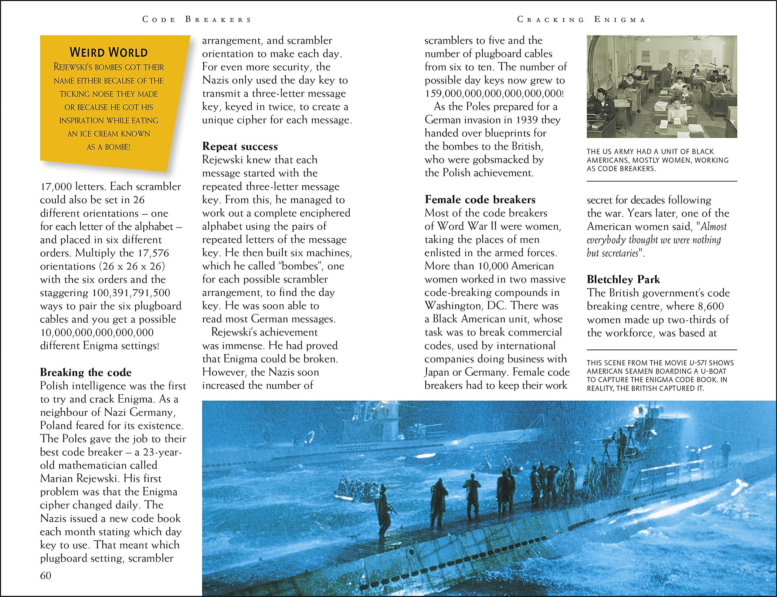 In this code-breaking book for kids, explore the mysterious world of clever codes and cyphers that have been invented over the years. Learn all about the brilliant people and the fiendishly innovative ways they eventually cracked the codes. Become an expert in cryptology as you follow the stories of famous code-breakers and their place in history.