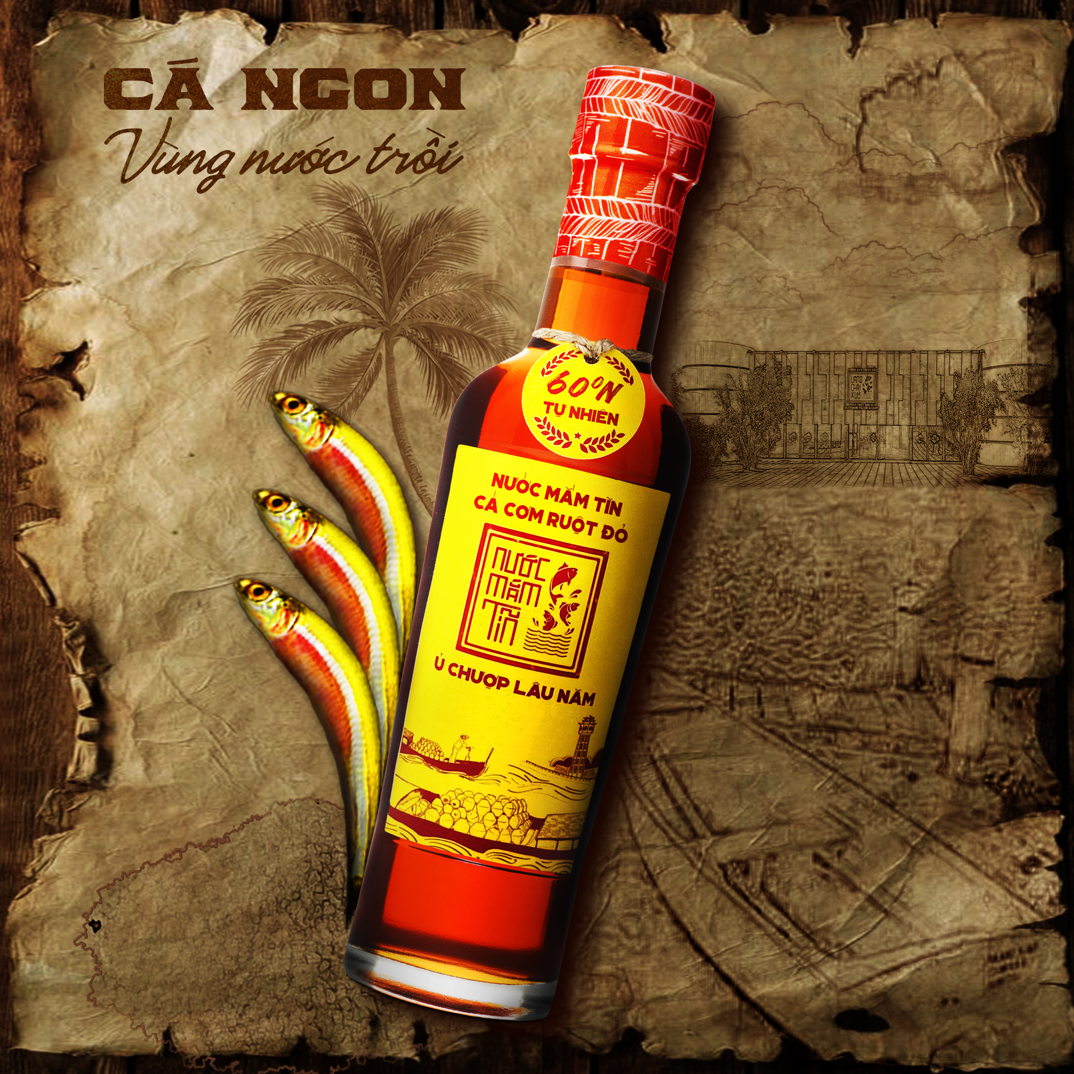 COMBO 2 CHAI 500ML NƯỚC MẮM TĨN CÁ CƠM VÀNG RUỘT ĐỎ ĐỘ ĐẠM 60N CHAI THỦY TINH - NƯỚC MẮM TĨN