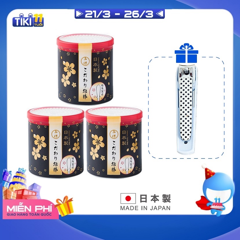 SET 03 HỘP 180 BÔNG TĂM NGOÁY TAI SANYO HÀNG NỘI ĐỊA NHẬT BẢN TẶNG BẤM MÓNG TAY TRẺ EM 8.5CM