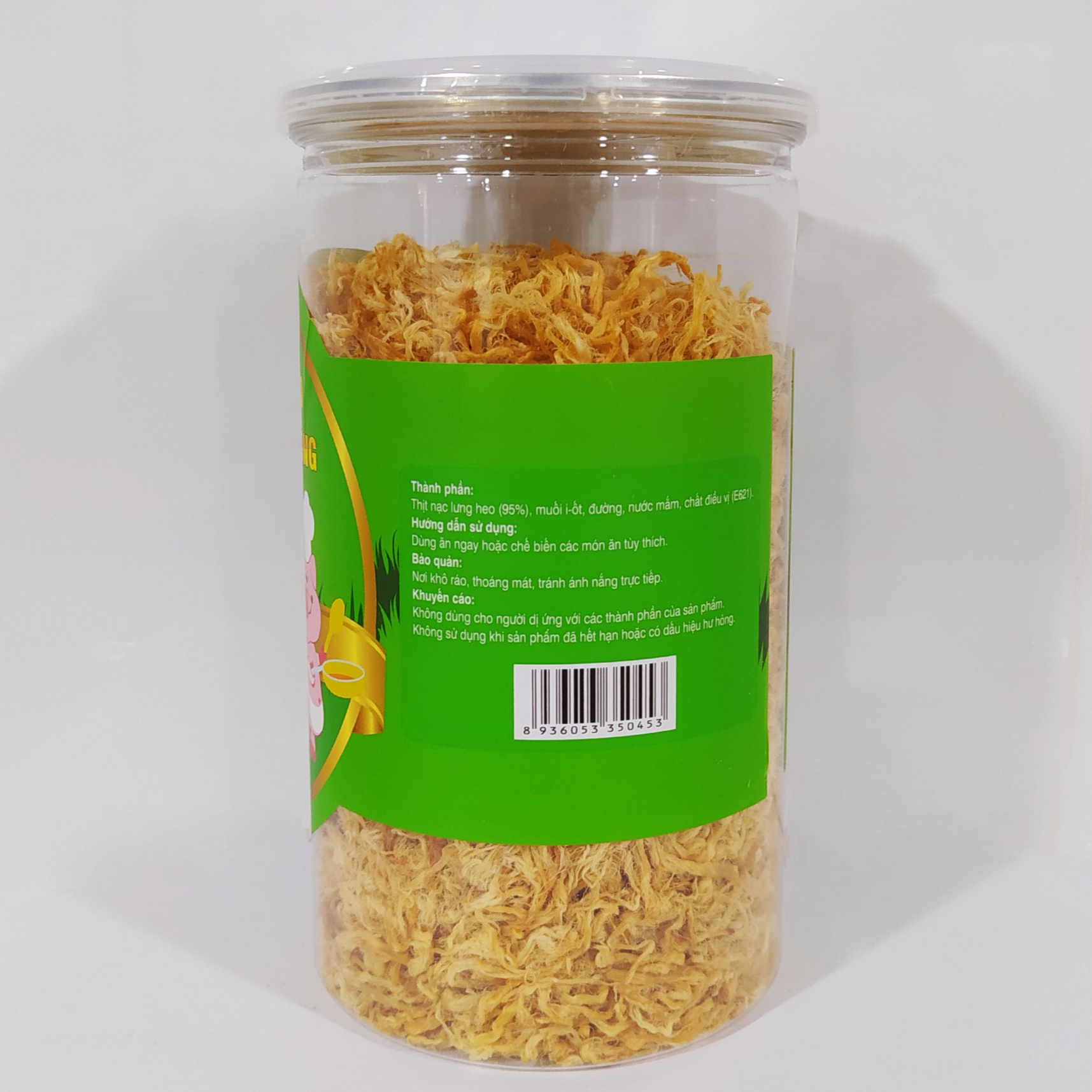 Thành phần: Thịt nạc lưng heo (95%), muối i-ốt, đường, nước mắm, chất điều vị (E621).