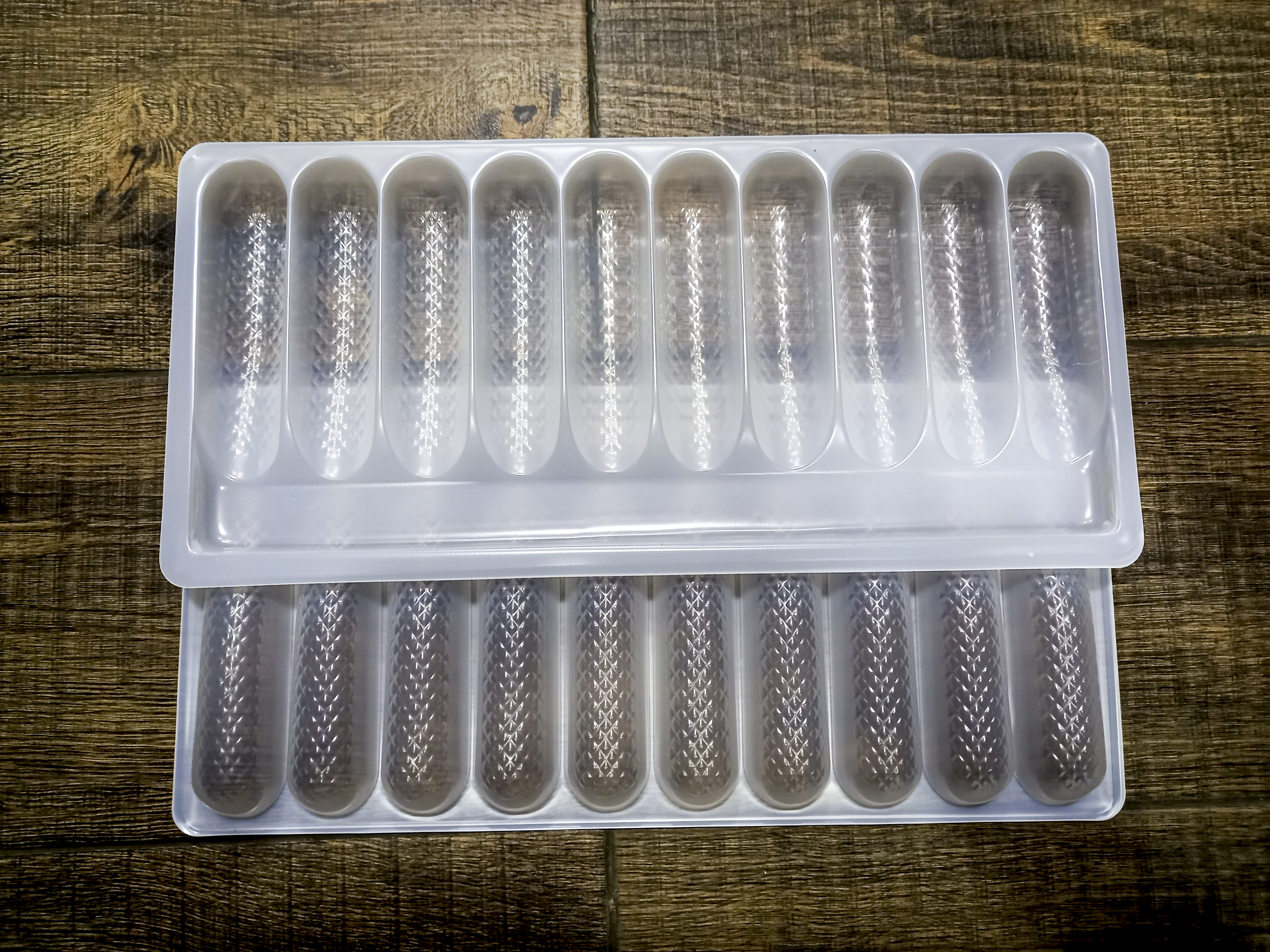 Đặc điểm sản phẩm: Khay nhựa PS đựng tôm được chia ra thành từng ngăn riêng biệt (thường 10 ngăn) với kích thước vừa đủ để đảm bảo sao cho giữ được hình dáng và chất lượng của tôm trong quá trình bảo quản tủ đông trong siêu thị hay vận chuyển trên cont để xuất khẩu đường thủy hay đường hàng không. Đặc biệt Khay nhựa PS đựng tôm Dong Ho TSTP chuyên sử dụng để đựng tôm sú vì kích thước rộng rãi, chất liệu, màu sắc sang trọng của nó mang đến cho sản phẩm.